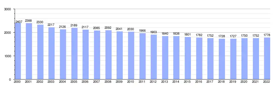 | Gráfica de evolución demográfica de Tharsis entre 2000 y 2022 |