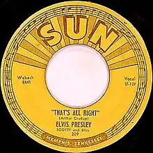 Elvis había grabado las canciones «My Happines» / «That's When Your Herataches Begin» en 1953 en el estudio Sun como regalo para su madre. La secretaria del estudio había anotado su nombre y dirección en algún momento y cuando el dueño de la compañía, Sam Phillips buscaba un cantante blanco que pudiese cantar como un negro, surgió el nombre de Presley. La idea de Phillips era grabar una serie de baladas y para ello convocó a Elvis junto a los músicos de sesión Scotty Moore y Bill Black. Presley habría intentado sin demasiado éxito grabar las baladas que Phillips le propuso y durante un receso, Elvis comenzó a cantar el blues "That's all right mamma" pero de manera acelerada. Los otros músicos se unieron a él con acompañamiento country. El sonido obtenido era netamente un rockabilly y Phillips sorprendido les preguntó qué era lo que estaban haciendo, a lo que los músicos respondieron que no lo sabían. Entonces Phillips les pidió que comenzaran de nuevo y finalmente días más tarde se editó el sencillo «That's All Right» / «Blue Moon of Kentucky». La canción grabada por Elvis se simplificó titulándola «That's All Right» (omitiendo la palabra ''Mamma"). El disco simple se convirtió en uno de los mayores éxitos de la compañía vendiendo a los pocos días de su lanzamiento unas 20 000 copias.[8]