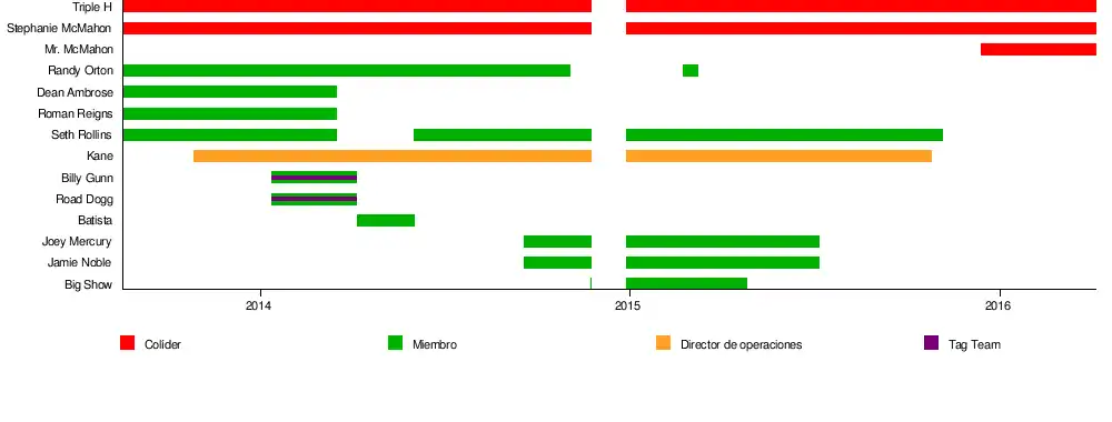| Mr. McMahon (colíder) | 14 de diciembre de 2015–4 de abril de 2016 | Presidente y director ejecutivo de WWE Se unió después de que Triple H fuera lesionado en TLC: Tables, Ladders & Chairs |