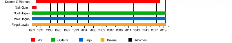 - Dolores O'Riordan: letrista, vocalista, guitarra rítmica y teclista (1990-2018).