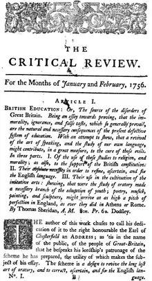 Smollett dirigiría The Critical Review como la principal rival de The Monthly Review, fundada en 1749,[4][5] entre otras consideraciones, tras haber colaborado con la Monthly, y criticando a su dueño, Ralph Griffiths, por publicar reseñas de los libros publicados por él.[6]