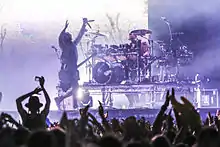La primera presentación en vivo de la banda del ciclo de álbumes The Hunting Party fue el 24 de mayo de 2014, en el festival de música KMFA Day, en el que encabezaron. La banda interpretó «Guilty All the Same», «Until It's Gone» y «Wastelands» por primera vez.[35] La banda también actuó como cabezas de cartel en Rock in Rio Lisboa VI el 30 de mayo de 2014. Durante la presentación, Shinoda lanzó sencillos promocionales que contenían la versión de estudio de «Wastelands» a la audiencia abierta, días antes del lanzamiento oficial del sencillo de la canción.[36] Linkin Park también está listo para embarcarse en una gira de dos titulares por América del Norte con Thirty Seconds to Mars en apoyo de The Hunting Party y el álbum de 2013 de Thirty Seconds to Mars Love, Lust, Faith and Dreams.[37] La gira, denominada Carnivores Tour, abarcó 25 fechas en agosto y septiembre de 2014, con la banda de rock estadounidense AFI actuando como teloneros durante toda la gira.[38] La banda realizó otra gira llamada The Hunting Party Tour, que comenzó el 30 de mayo de 2014. Sin embargo, algunos de los espectáculos de la gira fueron cancelados debido a que Bennington se lesionó la pierna.[39][40][41]