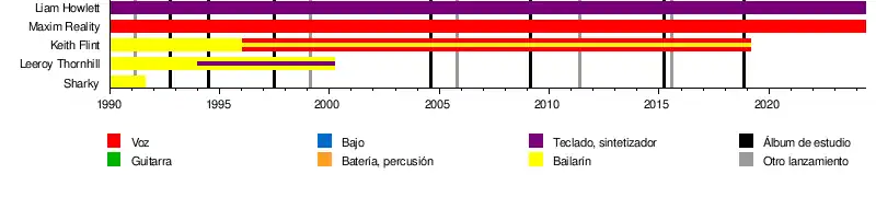 • Keith Flint: bailarín (1990–2019); vocalista (1996–2019)