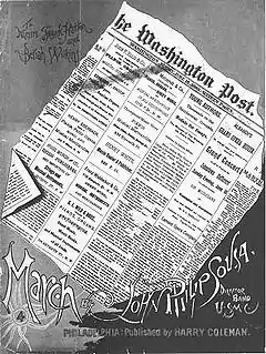 En 1889 los propietarios del diario The Washington Post encomendaron a John Philip Sousa, por entonces director de la Banda del Cuerpo de Marines de los Estados Unidos la composición de una marcha para la ceremonia de premiación de su concurso de ensayos. La creación de Sousa, «The Washington Post March» fue presentada en la ceremonia del 15 de junio de 1889, y se convirtió en una pieza muy popular.[1] El fenómeno llevó a un periodista británico a bautizar a Sousa como el «rey de las marchas». En el edificio de The Washington Post se honra a Sousa por su contribución al periódico y a Estados Unidos.