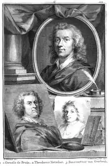 Retrato de Theodorus Netscher, abajo a la derecha en el Nieuwe Schouburg de Jan van Gool