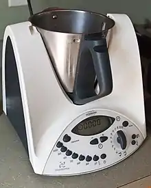 Thermomix es un robot de cocina fabricado por la compañía alemana Vorwerk, en su fábrica de la ciudad de Wuppertal, capaz de realizar diferentes funciones como cortar, mezclar, amasar, cocer a fuego lento, hervir y cocer al vapor.[1] Su primera versión data de 1961, y en total se han producido 10 versiones diferentes de este aparato de cocina. El robot ha sido desarrollado por 120 ingenieros y 800 expertos técnicos.[2]