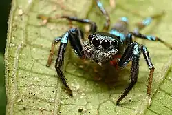 - «Thiania». Catálogo mundial de arañas (en inglés). Consultado el 28 de abril de 2022.