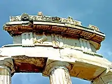 El tholos de Delfos era un tholos o templo circular construido en el año 390 a. C. Era uno de los edificios que formaban parte del santuario de Atenea Pronea, un conjunto situado a unos 1.5 kilómetros al este de las principales ruinas de Delfos,[1] en la unidad griega moderna de la región de Fócida.