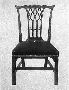 ![]() Una silla estilo Chippendale con un elaborado respaldo en «lazada». | ||