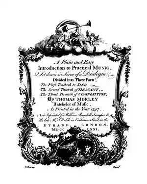 La obra de Morley Plaine and Easie Introduction to Practicall Musicke (publicada en 1597) permaneció popular durante casi doscientos años después de la muerte de su autor, y sigue siendo una importante referencia para información sobre composición e interpretación en el siglo XVI.