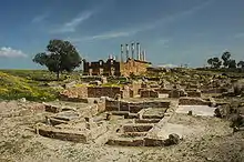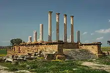 El Capitolio fue construido en el año 168,[8] hoy en día perviven cuatro columnas de orden corintio de 8,50 metros de altura, de las seis que componían la fachada principal. Su construcción se asemeja al Capitolio de Dougga,.[9][10] También hay que destacar el templo de Mercurio (mitología) consagrado en el año 211, situado al noroeste de la ciudad y compuesto por un peristilo circular de ocho columnas. Su proximidad cerca del foro, sigue las prescripciones del arquitecto Vitrubio.[11]
