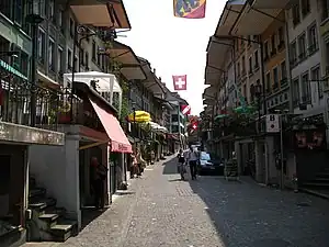 La ciudad se encuentra situada a orillas del lago de Thun. El centro histórico no se halla directamente al borde del lago, sino sobre un islote del Aar, que separa en dos brazos la ciudad.