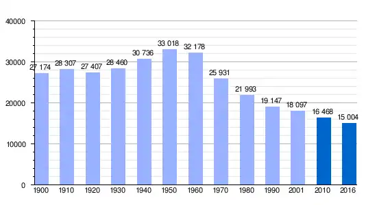 Población de derecho (1900-1991) o población residente (2001) según los censos de población del INE. Población según el padrón municipal de 2011 Y 2016 del INE. |
