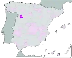 - Provincia de Salamanca: Aldeanueva de Figueroa, Aldearrodrigo, Forfoleda, Palacios del Arzobispo, Parada de Rubiales, Santiz, Topas, Torresmenudas, Valdelosa y Zamayón.[3]