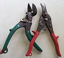 Una tijera consta de dos hojas pivotantes. En las tijeras de menor calidad, los bordes de corte no están especialmente afilados; es principalmente la acción de cortante entre las dos hojas la que corta el material. En las tijeras de alta calidad, las cuchillas pueden ser extremadamente afiladas y con resortes de tensión, para aumentar la tensión de corte y cizallamiento sólo en el punto exacto en el que se encuentran las cuchillas. El movimiento de la mano (empujando con el pulgar, tirando con los dedos) puede aumentar esta tensión. Un ejemplo ideal es el de las tijeras o cizallas de sastre de alta calidad, que deben ser capaces de cortar perfectamente (y no simplemente desgarrar) telas delicadas como la gasa y la seda.