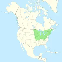Es originaria del este de Norteamérica, desde el sureste de Manitoba hacia el este hasta Nuevo Brunswick, al suroeste hasta el noreste de Texas y hacia el sureste hasta Carolina del Sur, y por el oeste a lo largo del río Niobrara hasta el condado de Cherry, Nebraska.[1][2] El brote de vástagos de los tocones es prolífica, a menudo dando por resultado grupos de varios árboles.