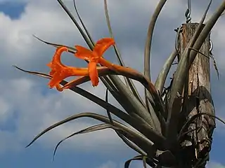 Tillandsia: nombre genérico que fue nombrado por Carlos Linneo en 1738 en honor al médico y botánico finlandés Dr. Elias Tillandz (originalmente Tillander) (1640-1693).