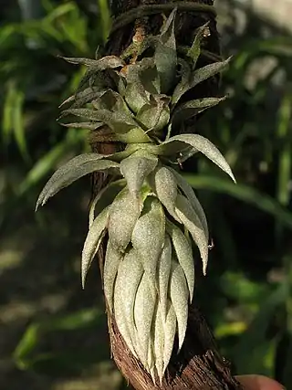 Tillandsia: nombre genérico que fue nombrado por Carlos Linneo en 1738 en honor al médico y botánico finlandés Dr. Elias Tillandz (originalmente Tillander) (1640-1693).