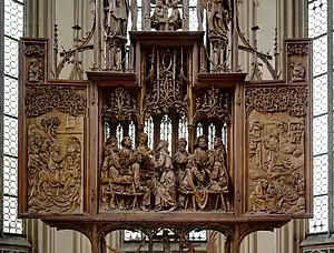- Altar de la Sagrada Sangre, en la Iglesia de san Jacobo, Rothenburg ob der Tauber, 1501-1505, en madera.