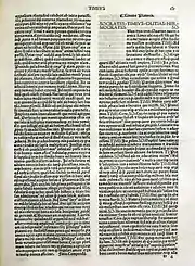 - Texto griego en el mismo sitio; los números en azul entre corchetes son rótulos activos que sirven para cambiar a la traducción francesa de Cousin.