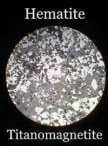 - Esta obra contiene una traducción derivada de «Titanomagnetite» de Wikipedia en inglés, publicada por sus editores bajo la Licencia de documentación libre de GNU y la Licencia Creative Commons Atribución-CompartirIgual 4.0 Internacional.