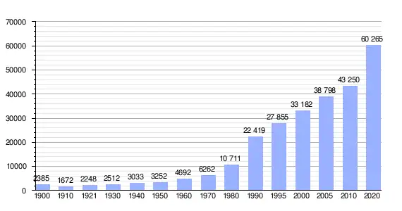 60 265 hab.[2] • 29 320 hombres • 30 945 mujeres | |