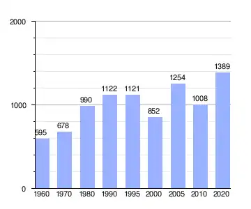 En 2020 registró una población de 1389 personas, lo que corresponde al 3.02 % de la población municipal.[15] De los cuales 627 son hombres y 762 son mujeres.[15] Tiene 314 viviendas particulares habitadas.[15]