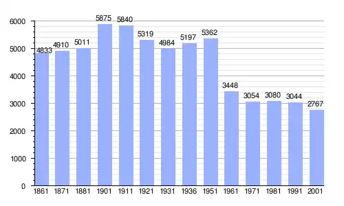 | Gráfica de evolución demográfica de Tocco da Casauria entre 1861 y 2001 |