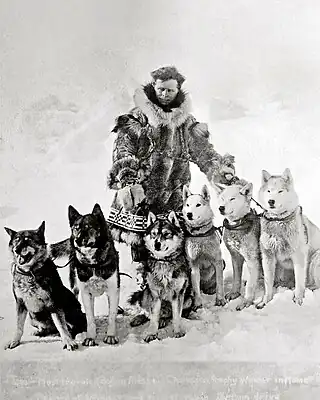 ![]() Togo es el primero por la izquierda en esta foto con su dueño, Leonhard Seppala. | ||