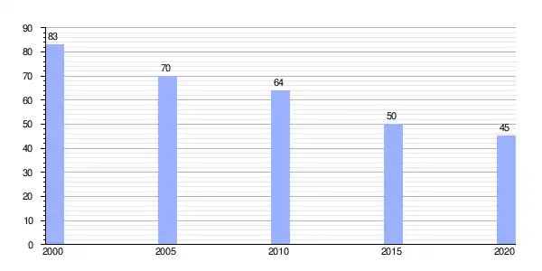 | Gráfica de evolución demográfica de Toldaos (aldea) entre 2000 y 2020 |