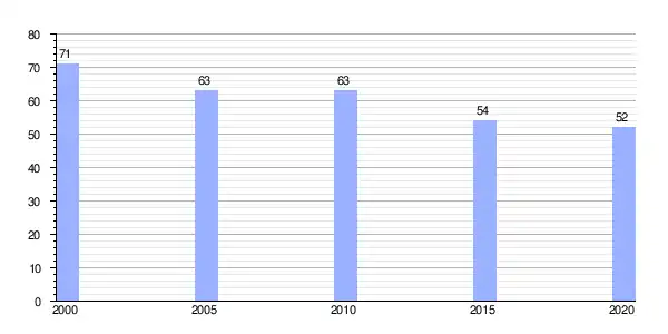 | Gráfica de evolución demográfica de Toldaos entre 2000 y 2020 |