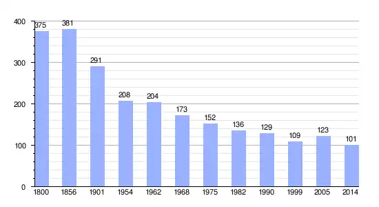 | Gráfica de evolución demográfica de Tollaincourt entre 1800 y 2014 |