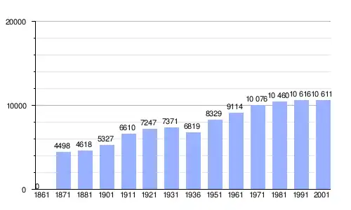 | Gráfica de evolución demográfica de Tolmezzo entre 1861 y 2001 |