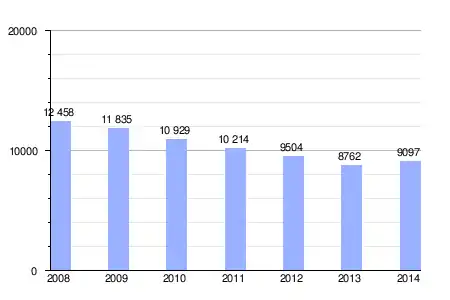 | Gráfica de evolución de la deuda viva del ayuntamiento entre 2008 y 2014 |