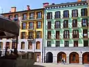 - Palacio de justicia (año 1853), ocupa uno de los lados de la plaza porticada cuadrada de 50 m de lado. Conjunto neoclásico de composición unitaria, destacando el palacio por una mayor riqueza de materiales y dos plantas en lugar de tres que tienen las viviendas contiguas. El pórtico se transforma aquí en arcada. Fachada de sillares calizos en planta baja y recerco de huecos e impostas. Obra de los arquitectos locales Unanue y Escoriaza. En la cárcel de este juzgado compuso el bardo José María Iparraguirre el sentido zortziko de evocación materna Nere amak baleki (Si mi madre supiera). En 2009 sede del Centro Internacional del Títere de Tolosa TOPIC.