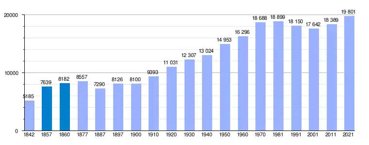 | Gráfica de evolución demográfica de Tolosa[4] entre 1842 y 2021 |