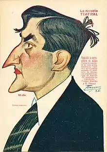 Caricaturizado por Tovar para un número de La Novela Teatral (1920) que incluye la zarzuela También la corregidora es guapa, obra de Borrás y G. Pastor.