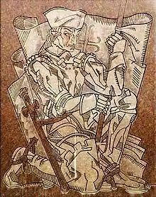 ![]() Detalle del monumento al capitán Tomás Sánchez de la Barrera por Pierre Bourdelle | ||