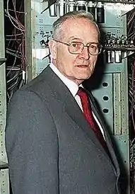 Tom Kilburn[4] (11 de agosto de 1921 – 17 de enero de 2001) fue un ingeniero inglés. Es conocido por desarrollar junto con Freddie Williams el Tubo Williams-Kilburn[5][6] y el primer computador de programa almacenado, la Máquina Experimental de Pequeña Escala (SSEM), mientras trabajaba en la Universidad Victoria de Mánchester.[7][8][9]