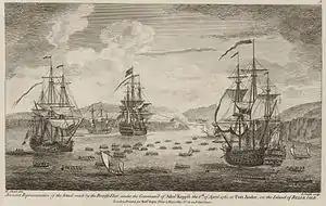 ![]() Ataque y captura de Belle Île en 1761 por las fuerzas británicas | ||||