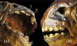 - Esta obra contiene una traducción derivada de «Tometes trilobatus» de Wikipedia en catalán, publicada por sus editores bajo la Licencia de documentación libre de GNU y la Licencia Creative Commons Atribución-CompartirIgual 4.0 Internacional.