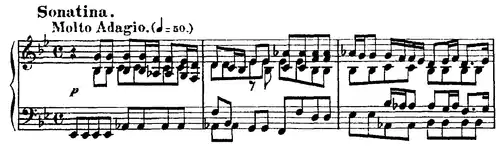 Cantata n.º 106, de Johann Sebastian Bach, escrita casi por completo en mi bemol mayor (3 ), aunque la armadura de clave es de si bemol mayor (2 ).