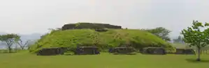 Monumento 69 este marcador fue recuperado al centro del juego de pelota 1, el texto glifico menciona la muerte del señor Wak Chan K'ak un probable heredero al trono y quien murió en el 775 d. C. Ahora en el Museo Regional de Tuxtla Gutiérrez.