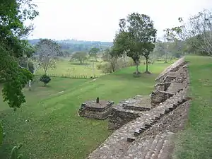 Juego de Pelota 1 Fue dedicado en 699 por K'inich B'aak Nal Chaak para marcar tres victorias sobre K'inich Kan Balam II de Palenque. Esculturas de los torsos de seis vasallos capturados del gobernante de Palenque se utilizaron como marcadores en el juego de pelota. Uno de estos vasallos se llama Yax Ahk (Tortuga Verde), que fue el señor de Annay Te', un sitio que probablemente se encuentra en el lado sur de Usumacinta entre Piedras Negras y Yaxchilán.