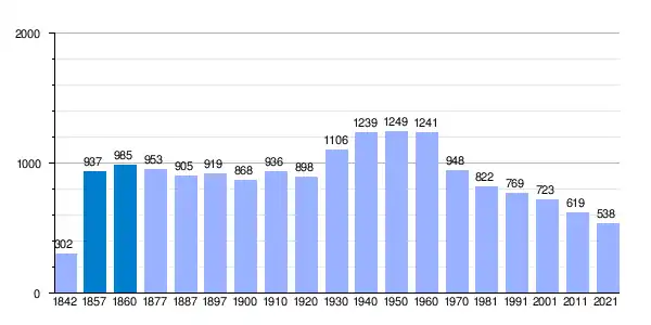 | Gráfica de evolución demográfica de Topas[11] entre 1842 y 2021 |