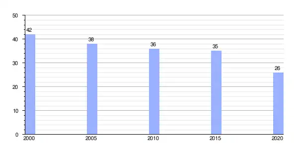 Gráfica de evolución demográfica de Tor (aldea) entre 2000 y 2020