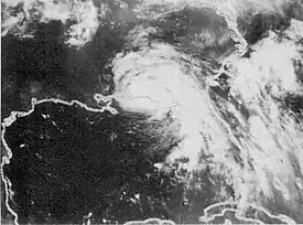 ![]() La tormenta tropical Alberto en una imagen satelital, poco antes de tocar tierra. | ||