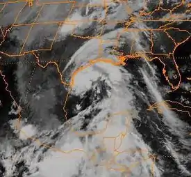 ![]() La tormenta tropical Arlene cerca de tocar tierra en Texas el 19 de junio de 1993. | ||