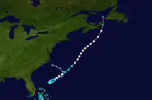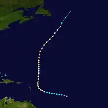 Una onda tropical se desarrolló en una depresión el 16 de octubre, a 650 km (404 mi) al noreste de Puerto Rico. Se intensificó en un pequeño huracán al día siguiente y viajó hacia al noroeste de Bermudas, pero fue bloqueado por vientos del nivel superior occidentales y se disipó el 21 de octubre, sin acercarse a tierra.
