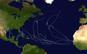 Mapa resumen de la temporada, que trazan las trayectorias y la intensidad de las tormentas, de acuerdo con la escala de huracanes de Saffir-Simpson (EHSS)